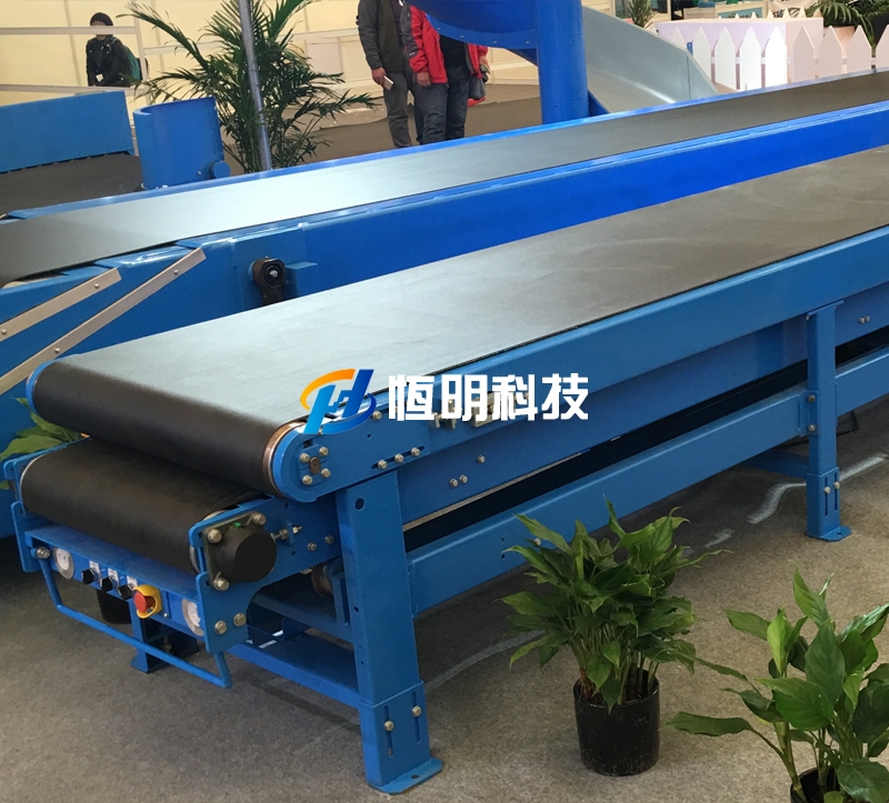 抽屉式皮带机用于实现物品的快速输送和装车。其分别由上层和下层胶带输送机叠加而成,上层胶带输送机实现物品输送功能,下层皮带输送机实现物品输送及装车的功能。下层皮带输送机可在人工助力下,由导轨导向单向拉出可根据汽车。