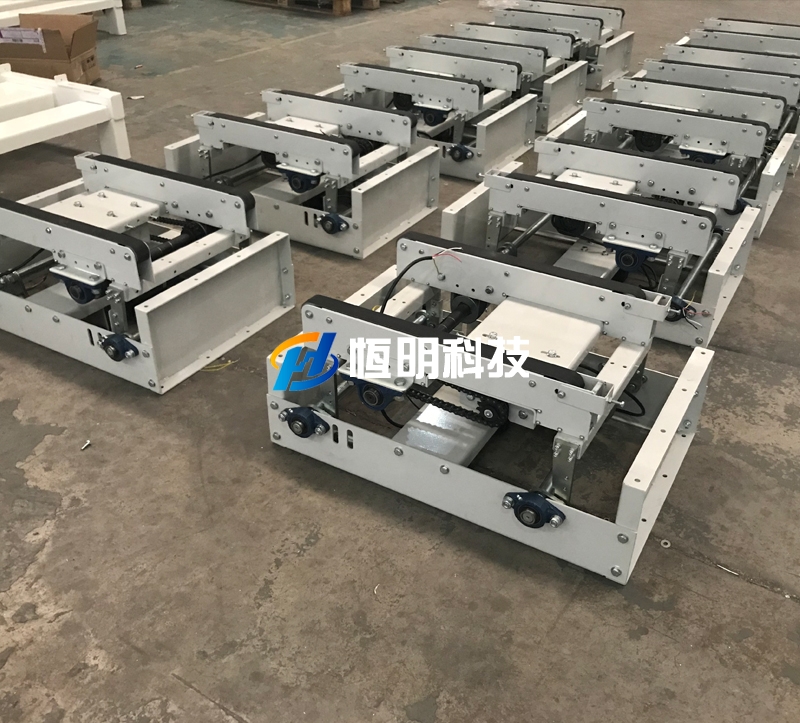 一般用于改变物品的输送方向,将物品从叉道送入或移出主输送线,具有承载大,结构简单,稳定可靠的特点,设备采用PLC可编程序控制,使得物品能方便地进出主辅输送线,不产生碰撞、挤压等现象,即使物品摆放不正,使设备侧边或一角受力,依然能顺利升降,不存在阻滞或卡死现象。在空间有限的条件下可实现直角转弯,具有节省空间的优势。在空间有限的条件下实现直角转弯,具有节省空间的优势,缺点是:成本过高,输送速度慢的缺点。而且对输送机高度有yi定要求。工件经过顶升移载机后,原有的运行方向发生了改变。