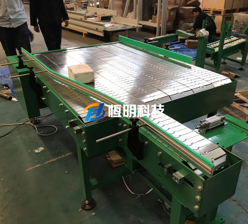 顶板链输送机的输送面平坦光滑,摩擦力小,物料在输送线之间的过渡平稳,可输送各类玻璃瓶、PET瓶、易拉罐等物料,也可输送各类箱包